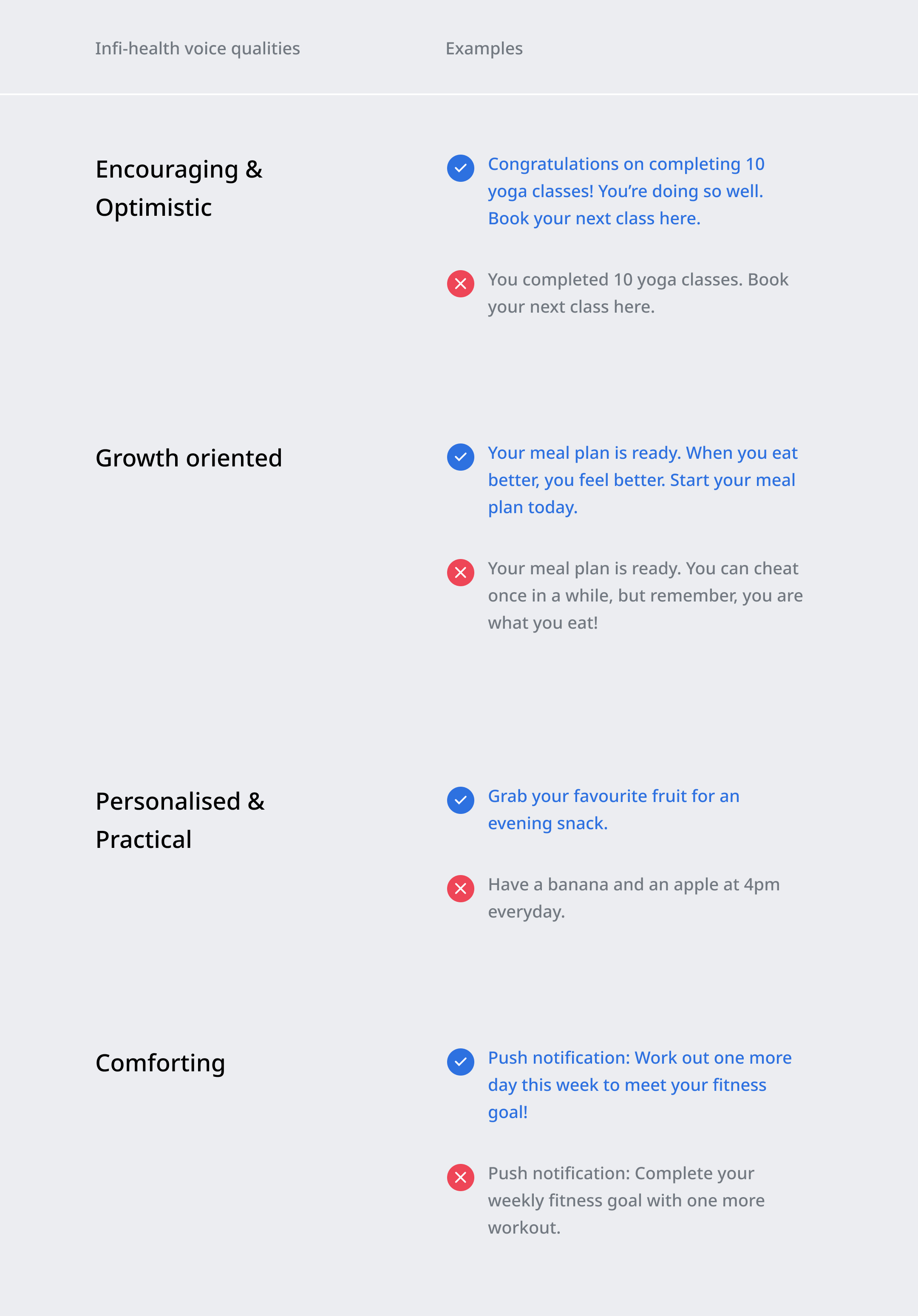 > Having real examples of copy in the product enrich your voice guidelines👇