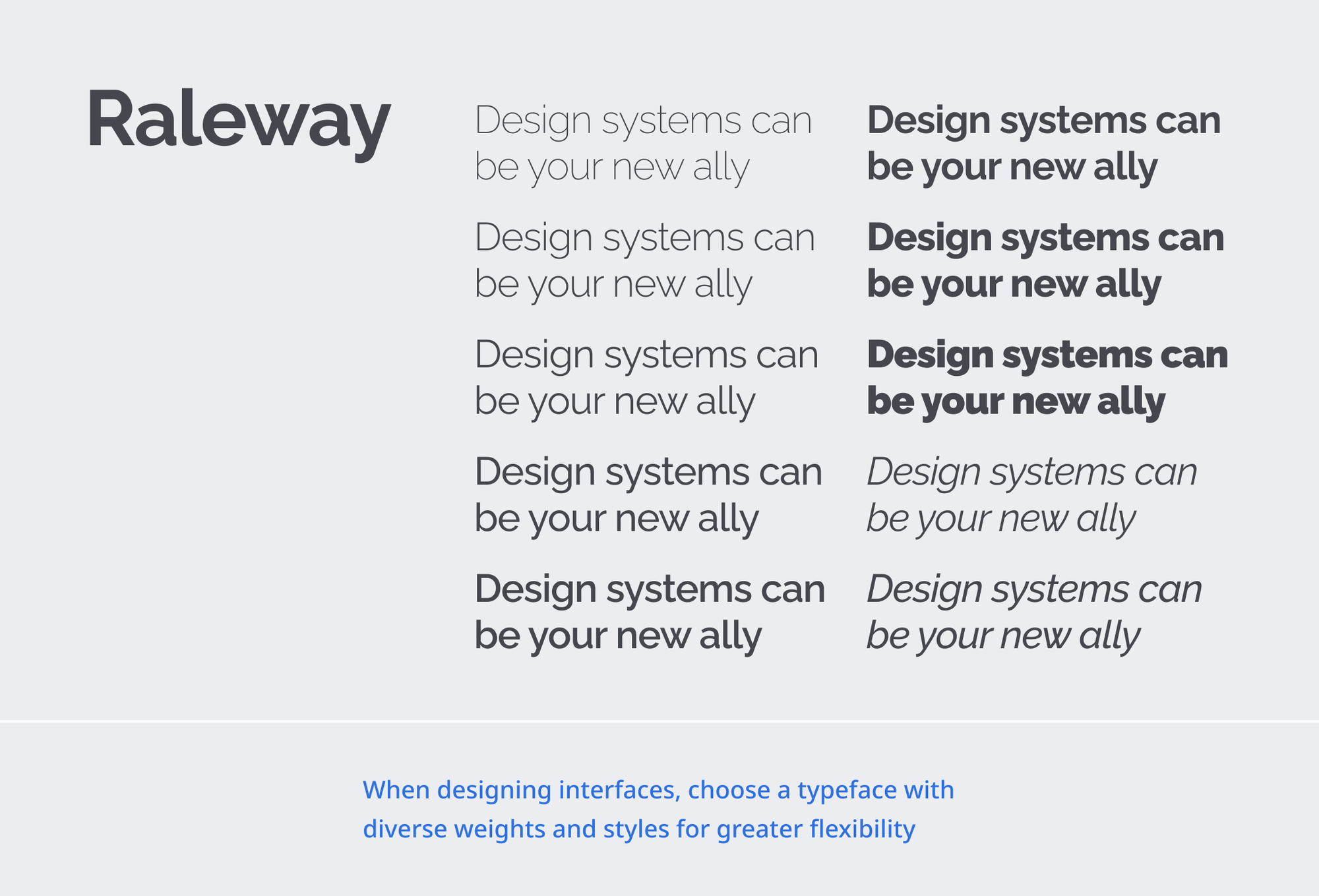 > Typefaces with multiple weights and styles can be useful in most scenarios.