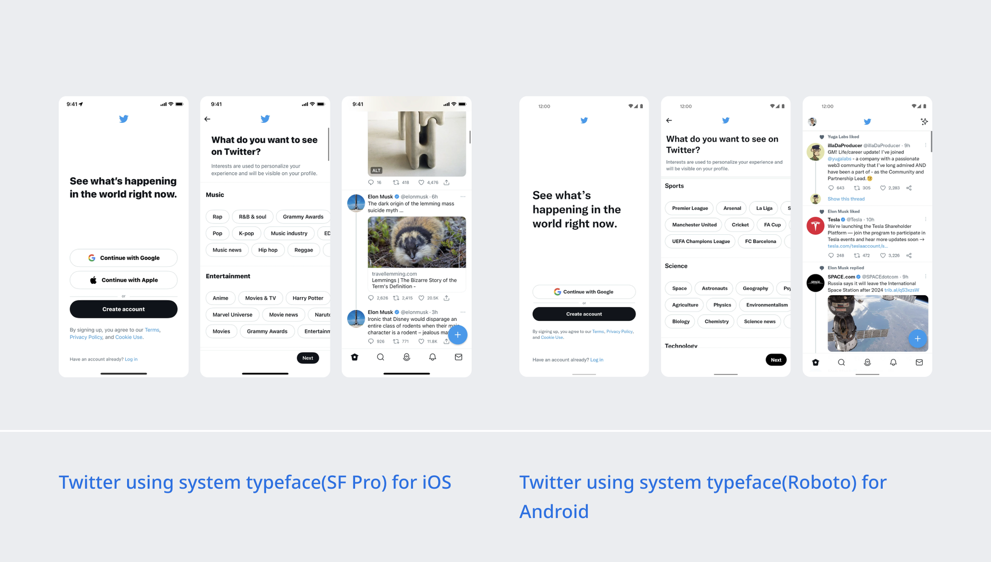 While choosing a typeface, based on your requirement you can [choose between native and custom fonts](https://medium.com/trade-me/custom-vs-native-fonts-in-apps-9cd7d872491c).